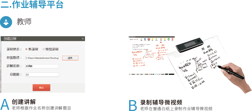 Specially designed for exam-bound students, the HappyClass Home work Guide System provides daily exam explanations for students to access at anytime, allowing them to learn at their own pace. This resolves the issue of"one student pulling the leg of the entire class." Meanwhile, teachers can record video expositions on key questions and can easily share the resource with the entire school on our Homework Guide Platform, improving the overall performance of the school.