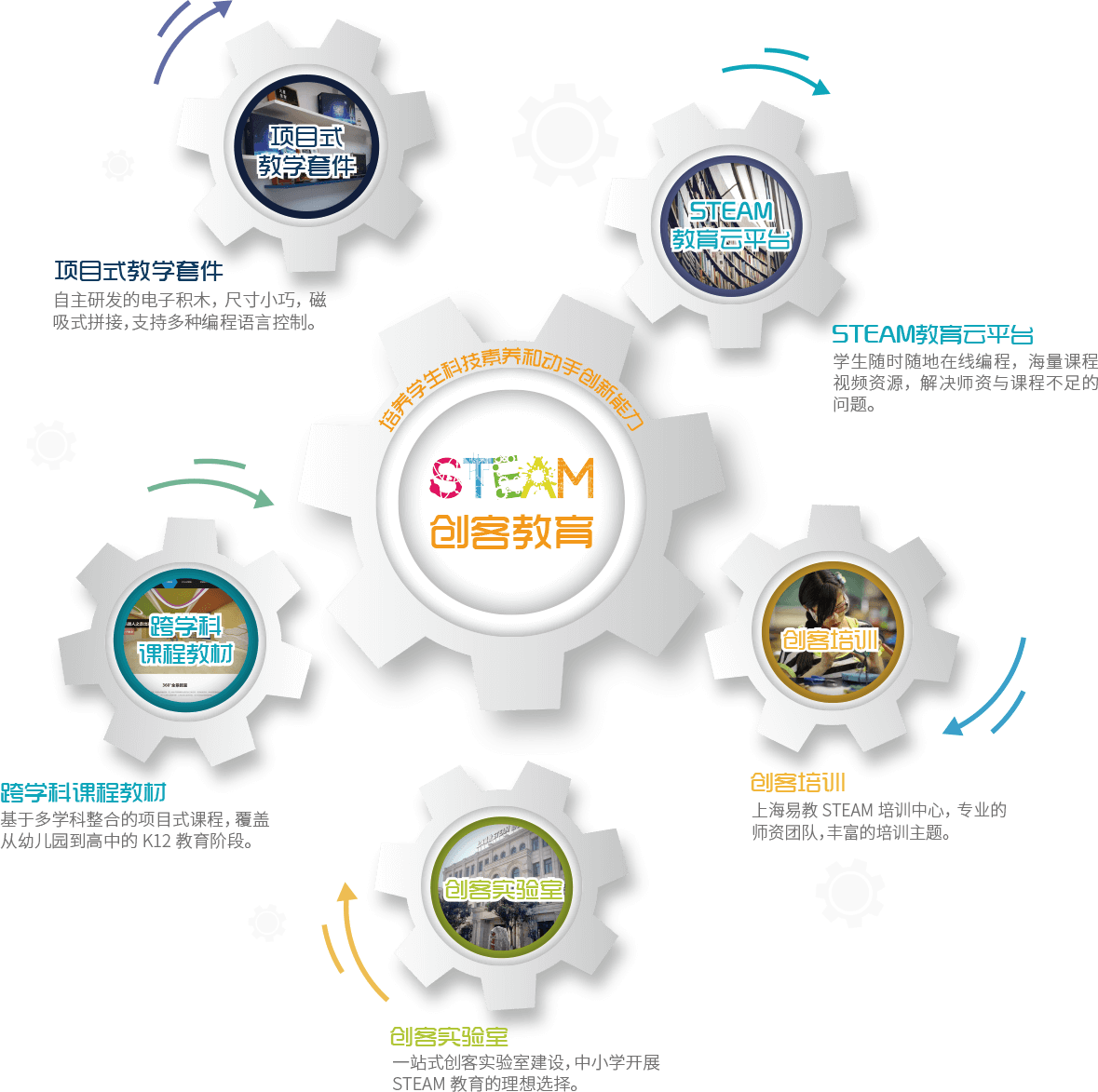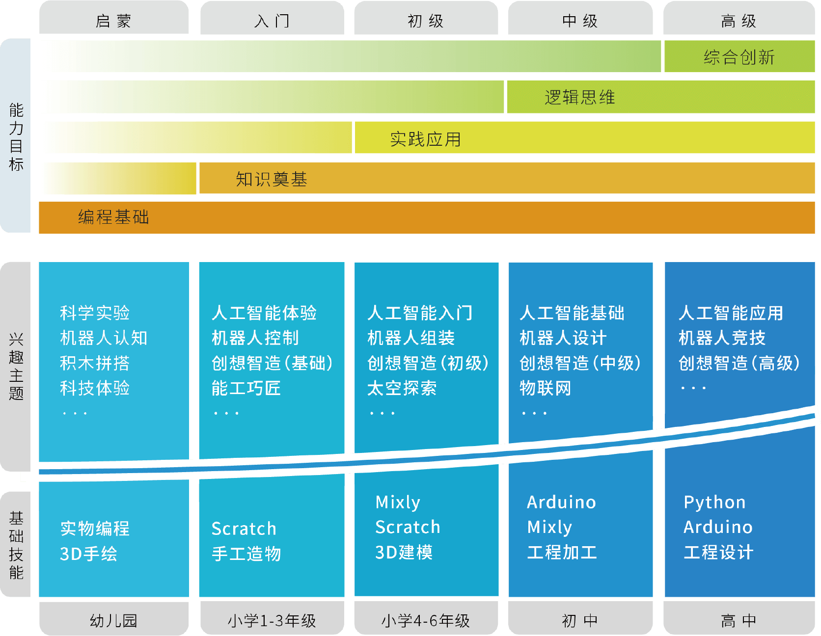 A comprehensive multi-disciplinary integrated STEAM curriculum system covering kindergarten, primary school, junior high school, and senior high school.