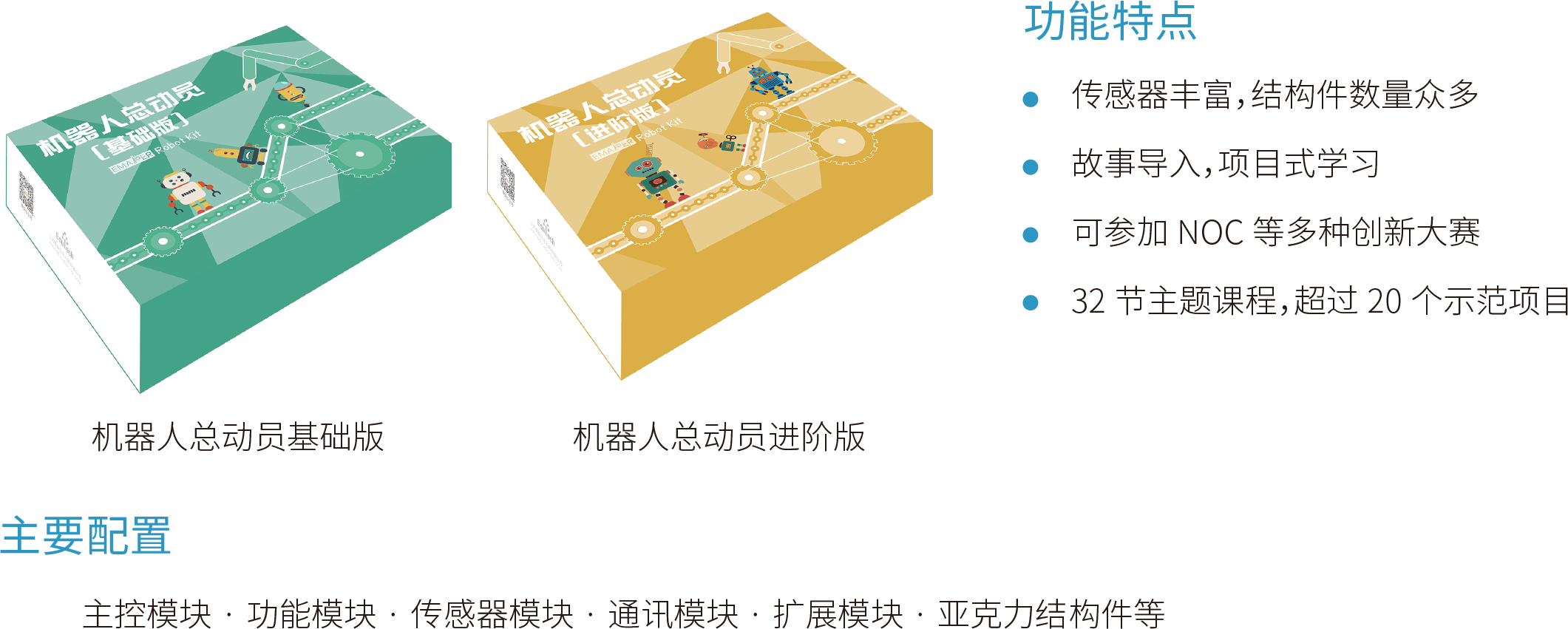 The XiaoYi Robot (Elementary Competition Edition) consists of a robotics kit for elementary school students and a corresponding curriculum, supported by graphical programming.