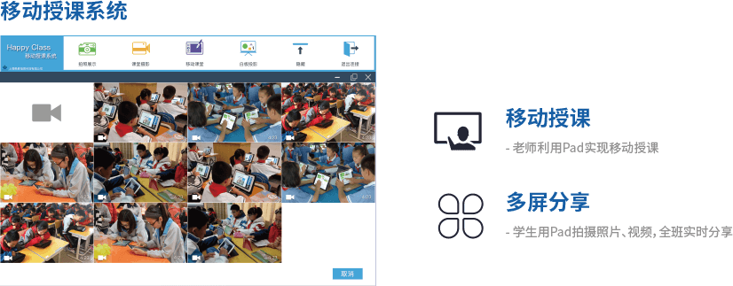 将传统智慧校园中基于电脑实现的教学、管理和家校互动功能移动到手机和Pad等智能设备上,具有前瞻性和便捷性,避免学校投资浪费。